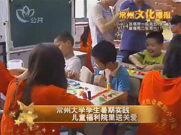 【口播】常州大学艺术学院学生暑期爱心大行动,儿童福利院里陪小朋友们跳操、画画、做泥工。
