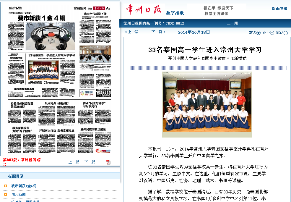 此次交流学习意味着泰国教育部首次将进入中国大学学习纳入泰国高中生的学习课程,开创了中国大学嵌入泰国高中教育的合作新模式。今后,常州大学蒙福学堂将定期接收泰国学生来常留学。