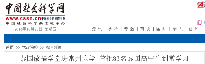 中新网常州10月20日电 (记者 唐娟通讯员包海霞)常州大学泰国蒙福学堂正式开学。20日,记者从常州大学了解到,首批33名泰国蒙福学校的高一学生已全部到达常州大学开始为期三个月的学习,这开创了中国大学嵌入泰国高中教育合作新模式。据了解,常州大学刚刚成为泰国教育部官网公布的文凭被其认可的200所中国大学之一。