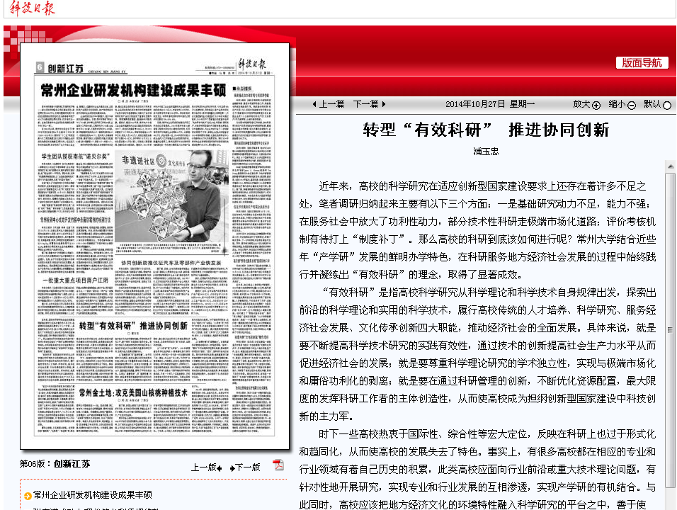 近年来,高校的科学研究在适应创新型国家建设要求上还存在着许多不足之处,笔者调研归纳起来主要有以下三个方面:一是基础研究动力不足,能力不强;在服务社会中放大了功利性动力,部分技术性科研走极端市场化道路;评价考核机制有待打上“制度补丁”。那么高校的科研到底该如何进行呢?常州大学结合近些年“产学研”发展的鲜明办学特色,在科研服务地方经济社会发展的过程中始终践行并凝练出“有效科研”的理念,取得了显著成效。