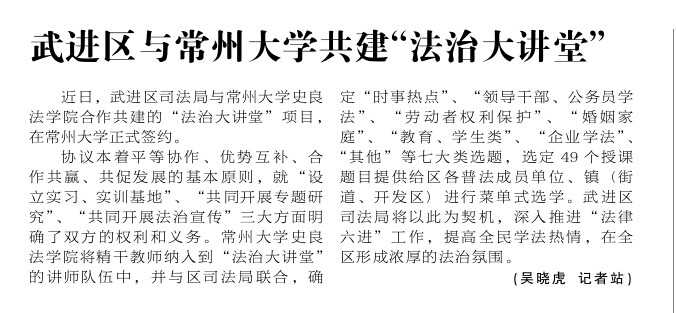 江苏工人报:武进区与常州大学共建“法治大讲堂”
