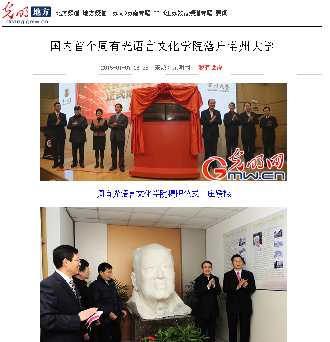 “现在,国内有几个以周有光先生命名的研究机构,但学院却是首个。”常州大学副校长芮国强告诉记者,学院不光要探究周老在语言方面的成就,还要将其融入教育教学,推动符合时代需求的语言文化人才成长。