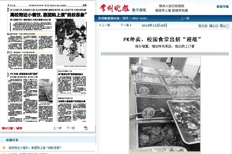 记者了解到,考虑到食品安全,有的高校向来禁止外卖进校园,比方说常州信息学院。而一些已被“入侵”的校园食堂也在动脑筋。