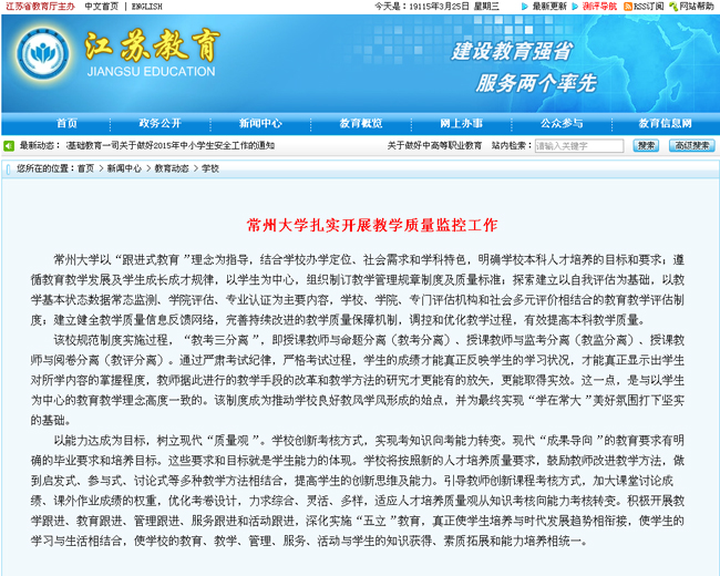江苏教育:常州大学扎实开展教学质量监控工作