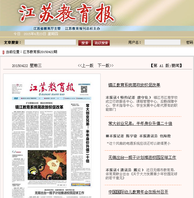 江苏教育报原文地址:http://epaper.jsenews.cn/shtml/jsjyb/20150422/17414.shtml (编辑 包海霞)