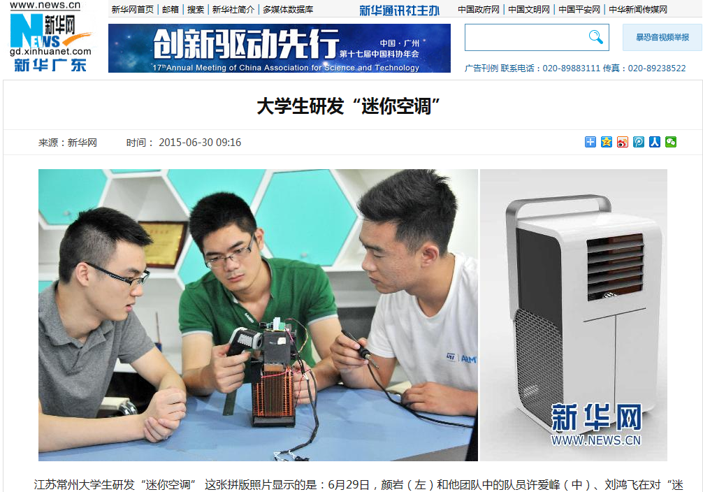 大学生研发“迷你空调”