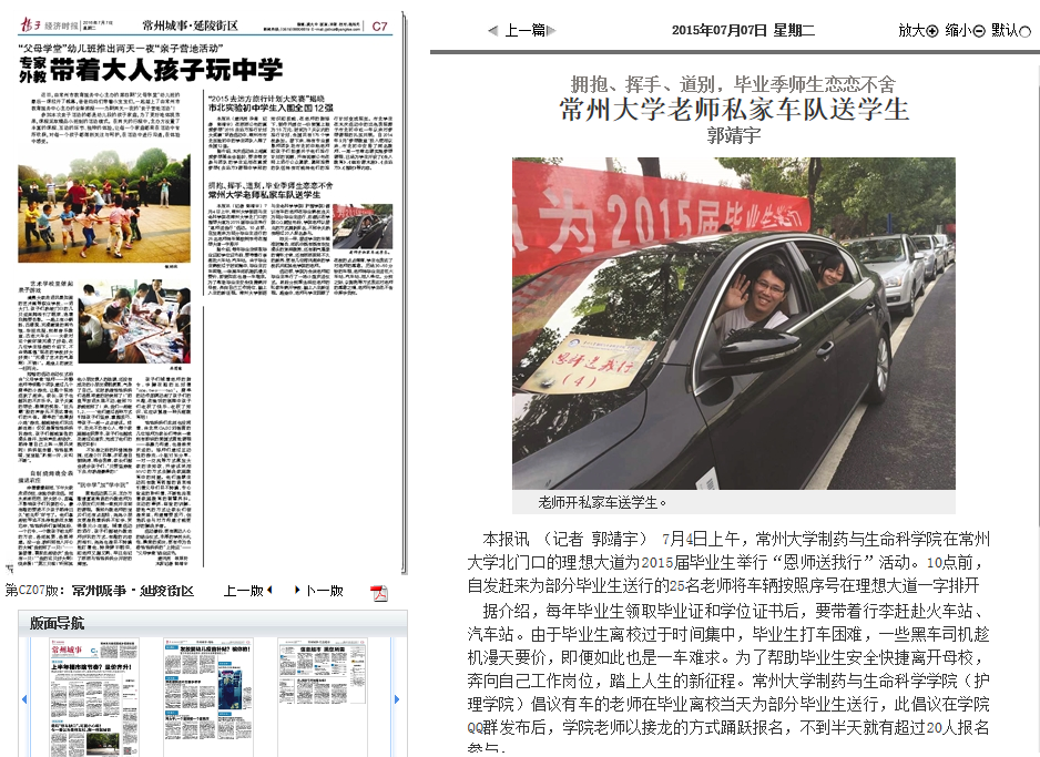 据介绍,每年毕业生领取毕业证和学位证书后,要带着行李赶赴火车站、汽车站。由于毕业生离校过于时间集中,毕业生打车困难,一些黑车司机趁机漫天要价,即便如此也是一车难求。为了帮助毕业生安全快捷离开母校,奔向自己工作岗位,踏上人生的新征程。常州大学制药与生命科学学院(护理学院)倡议有车的老师在毕业离校当天为部分毕业生送行,此倡议在学院QQ群发布后,学院老师以接龙的方式踊跃报名,不到半天就有超过20人报名参与。