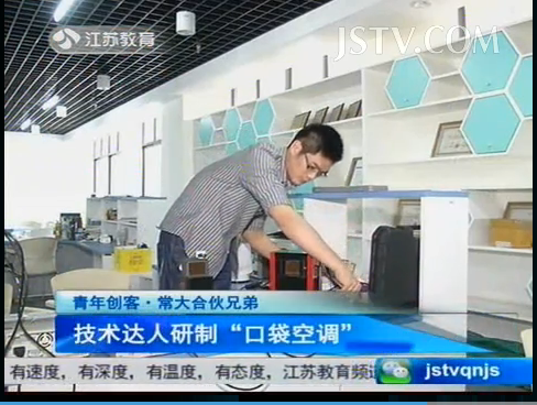 [正文]这个看似小音箱的设备,只有1斤多重,但它有一个别致的名字,叫“口袋空调”。从今年3月开始,颜岩、许爱峰和他们的创业团队研制了两个多月,发明了一种新材料,代替传统的制冷剂,制冷的效果更好,而且节能环保,产品的外型也越变越小,方便携带。6月份,这款“口袋空调”正式在阿里巴巴上进行销售。