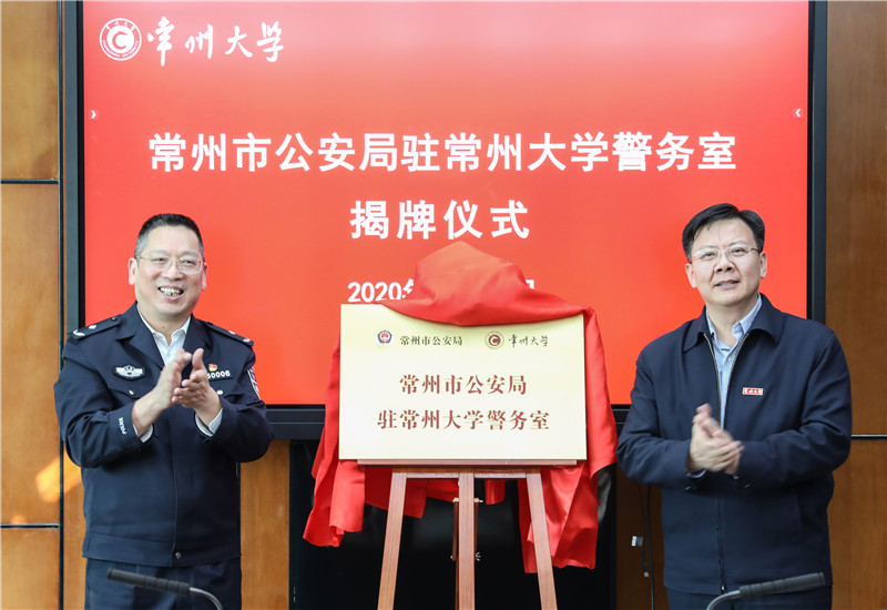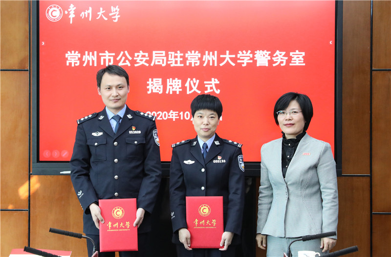 10月23日下午,常州市公安局驻常州大学警务室揭牌仪式在我校举行。常州市公安局副局长金继英、常州大学校长蒋军成、副校长黄海燕出席活动,武进区公安局、市刑警支队、内保支队、科教城派出所和我校相关职能部门负责人参加仪式。常州市内保支队副支队长姜莉娜主持揭牌仪式。