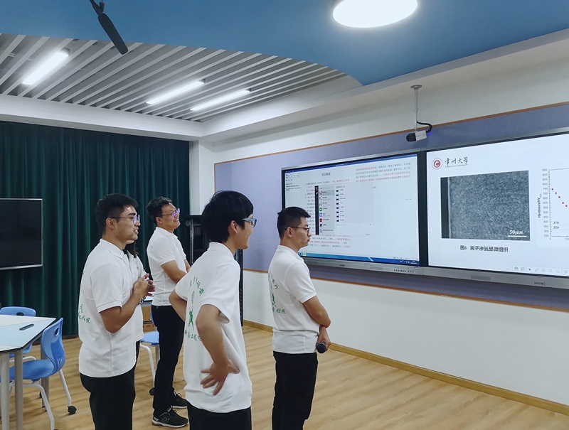 本次大赛共有来自清华大学、哈尔滨工业大学、天津大学、东北大学、南京理工大学、常州大学等89所高校的233件作品参赛,经过初赛和复赛的选拔,《钛增强离子渗氮技术》表现优异,入围决赛,经过抽签选定决赛命题,师生团队在两天时间内围绕命题制作PPT、打磨讲稿、准备问辩,最后斩获一等奖。获得一等奖的毛长军同学表示,参加比赛不仅拓宽了专业视野,也体会到了团队合作的重要性,正是团队同学们分工明确、团结协作,才能在很短时间内顺利完成PPT讲稿和问辩题库的准备,最终取得好成绩。