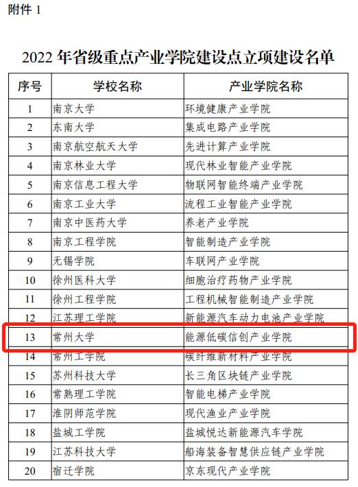 近日,江苏省教育厅发布《2022年省级重点产业学院建设点遴选结果的通知》(苏教高函〔2022〕18号),全省共立项建设第三批省级重点产业学院建设点20个,我校能源低碳信创产业学院成功入选。截至目前,学校共获批1个国家级现代产业学院(阿里云大数据学院)、3个省级重点产业学院(机器人产业学院、应急管理科学与工程学院、能源低碳信创产业学院)。