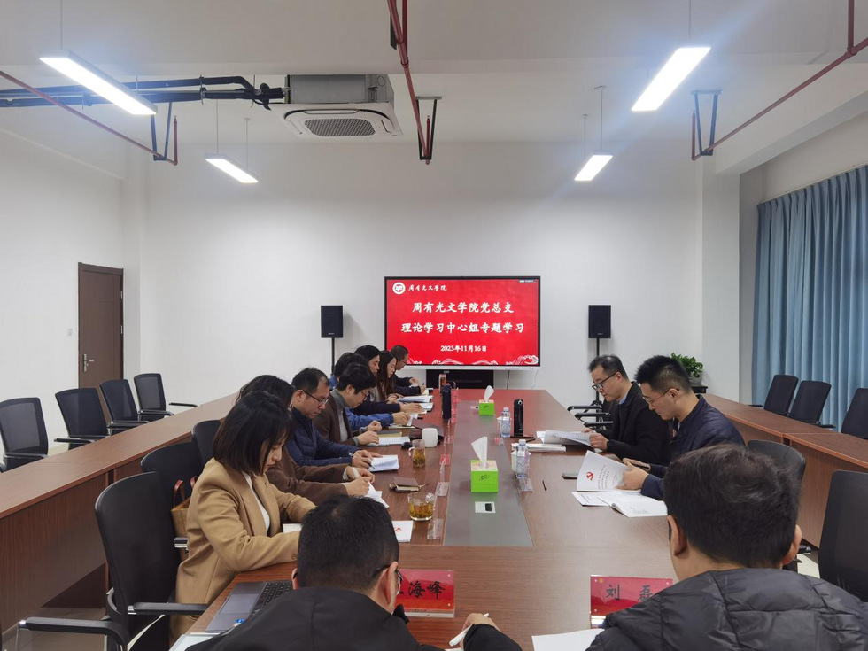 11月16日上午,党委常委、副校长周刚在西太湖校区立言楼334会议室巡学旁听周有光文学院党总支理论学习中心组(扩大)学习会,会议第三次集体学习学校第三次党代会精神。学院党总支理论学习中心组成员参会,院长助理、教研室主任列席会议。