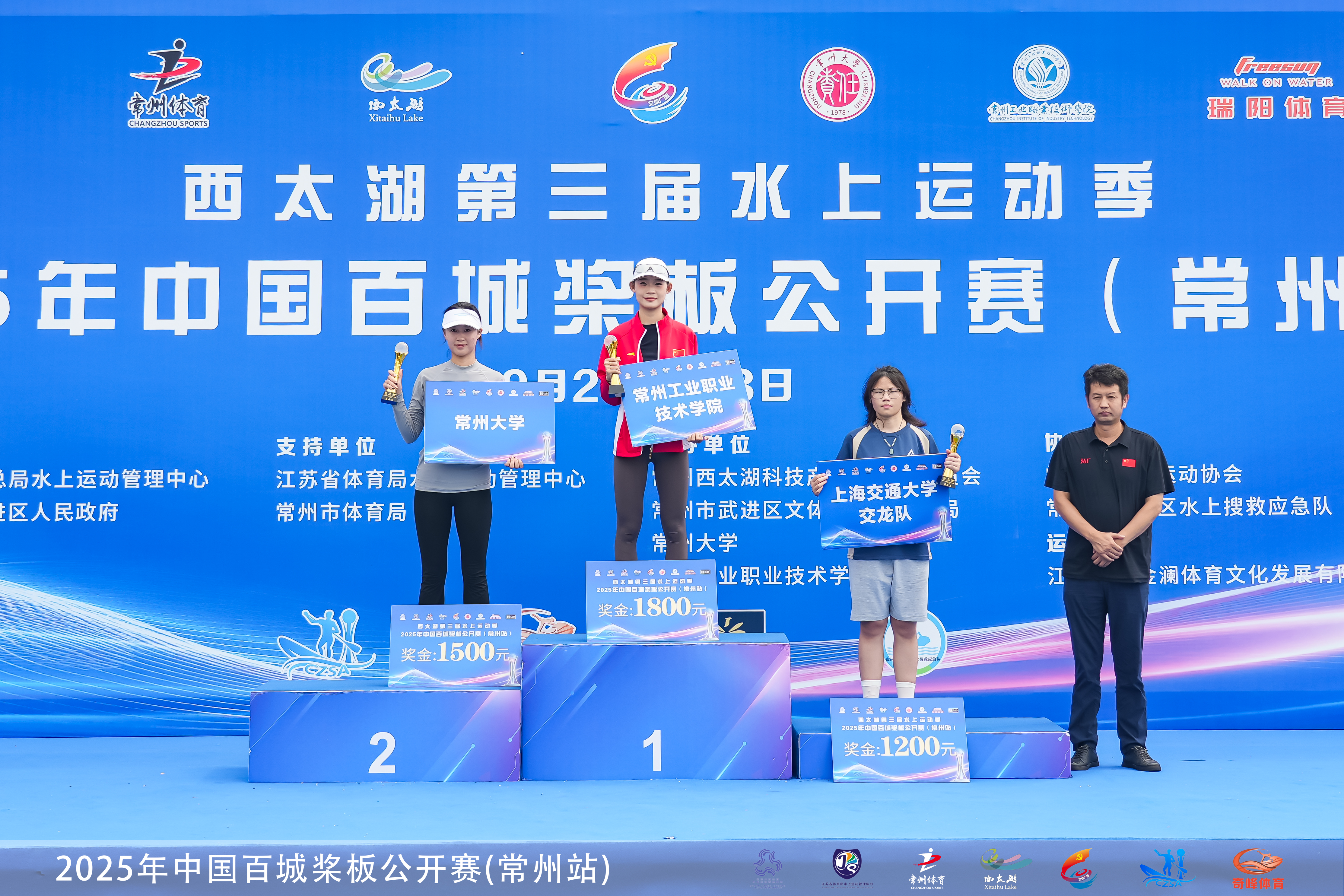 9月27至28日,2025年中国百城桨板公开赛在常州西太湖拉开帷幕,本次赛事由国家体育总局水上运动管理中心、常州市武进区人民政府共同举办。比赛分为大师组、高校组、青少年组等八个组别,来自上海交通大学、浙江大学、东华大学等十三所高校的324名运动员参加比赛。我校2024级学生张潇月在女子组桨板个人赛6KM耐力赛中以1小时1分21秒取得第二名,在女子组桨板个人赛200米冲刺赛中以2分11秒取得第二名,并以总积分1720分取总成绩第二名,获得高校女子组桨板个人赛亚军。