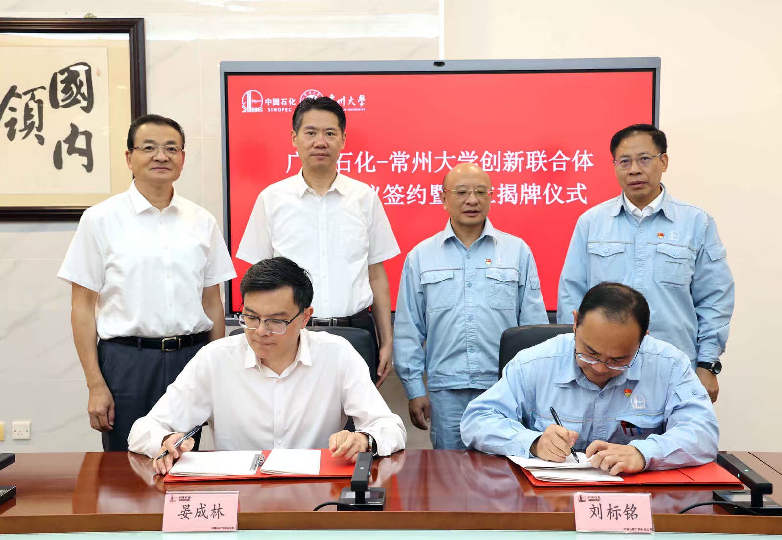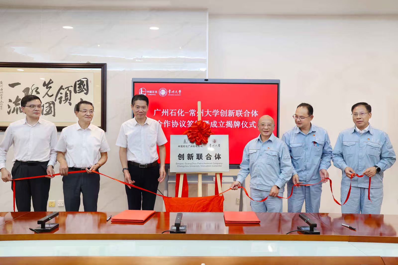 10月17日,广州石化—常州大学创新联合体(以下简称“创新联合体”)合作协议签约暨成立揭牌仪式在中国石化广州石化公司(以下简称“广州石化”)举行。广州石化党委书记、分公司代表刘琤,副总经理刘标铭,副总工程师曾芳勇,技术质量部、发展规划部、生产调度部、储运部、信息中心相关领导,常州大学党委副书记、校长陈海群,原党委书记陈群,副校长晏成林出席会议,能创处、相关学院负责人及有关专家共同参会。刘标铭主持会议。
