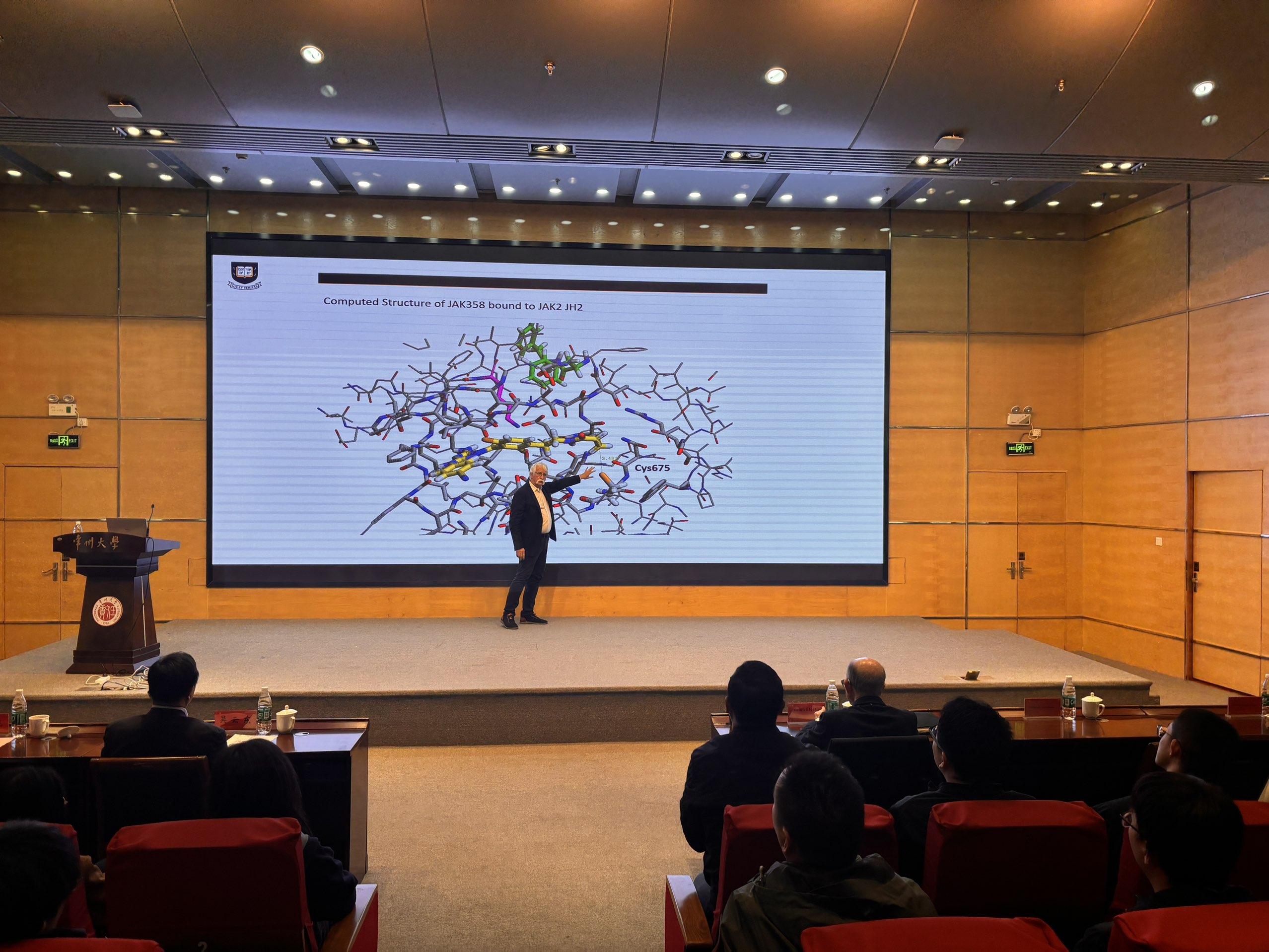 在报告中,Jorgensen教授系统介绍了自由能计算的发展历程及其在分子模拟和药物发现中的重要作用。他指出,自由能计算结合分子动力学和Monte Carlo模拟方法,极大地推动了溶液热力学、反应活化能计算、主客体结合及药物分子优化等方面的研究。报告介绍了团队自1981年以来的自由能计算工作,并重点展示了其在抗击新冠病毒SARS-CoV-2主蛋白酶抑制剂发现方面取得的最新成果。