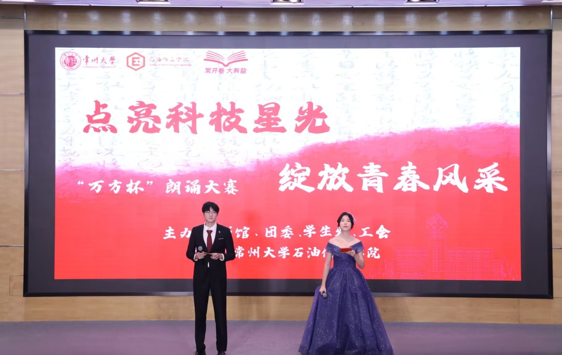 11月14日下午,由图书馆、团委、学生处、工会联合主办,石油化工学院承办的常州大学第十五届读书节“万方杯”朗诵大赛决赛在科教城校区文彰楼报告厅落下帷幕。本次朗诵大赛是常开卷·大有益:常州大学第十五届读书节系列活动之一,以“点亮科技星光,绽放青春风采”为主题,探寻科技的创新之路,彰显青年的奋进担当。学生工作处、工会、石油化工学院、机械与轨道交通学院、瞿秋白政府管理学院、周有光文学院、图书馆、宣传部相关负责人出席大赛。