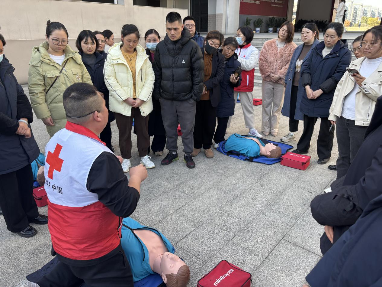 培训过程紧扣校园突发场景急救需求。理论教学环节,讲师结合真实案例,深入浅出讲解心肺复苏(CPR)原理、自动体外除颤器(AED)使用规范及创伤救护基础知识,重点强调“黄金四分钟”施救的关键意义。实践操作中,讲师采取手把手教学,依托模拟人模型示范胸外按压、人工呼吸等标准化动作,逐一对学员按压深度、频率等细节问题进行纠正,针对创伤救护(外出血的止血与包扎)技能,现场演示螺旋包扎、“8”字包扎等方法及三角巾应用技巧,指导学员结合不同伤情灵活选择并规范操作。参训师生专注投入练习,主动请教操作难点,现场学习氛围浓厚。培训尾声的考核环节,通过“理论测试+实操演练”相结合的方式检验学习成效,确保学员切实掌握急救技能。
