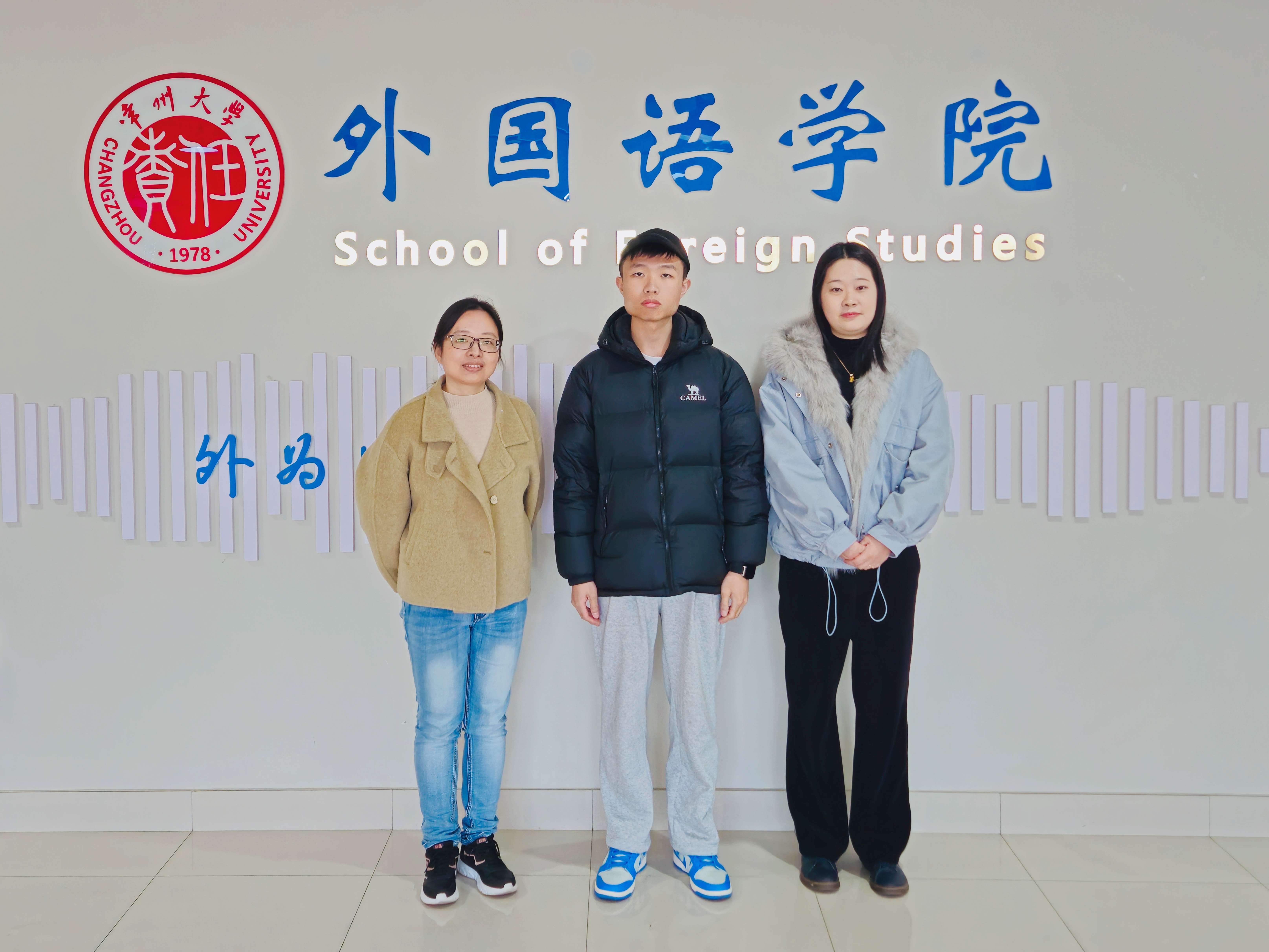 英语221班 章洵(左二)与指导老师合影