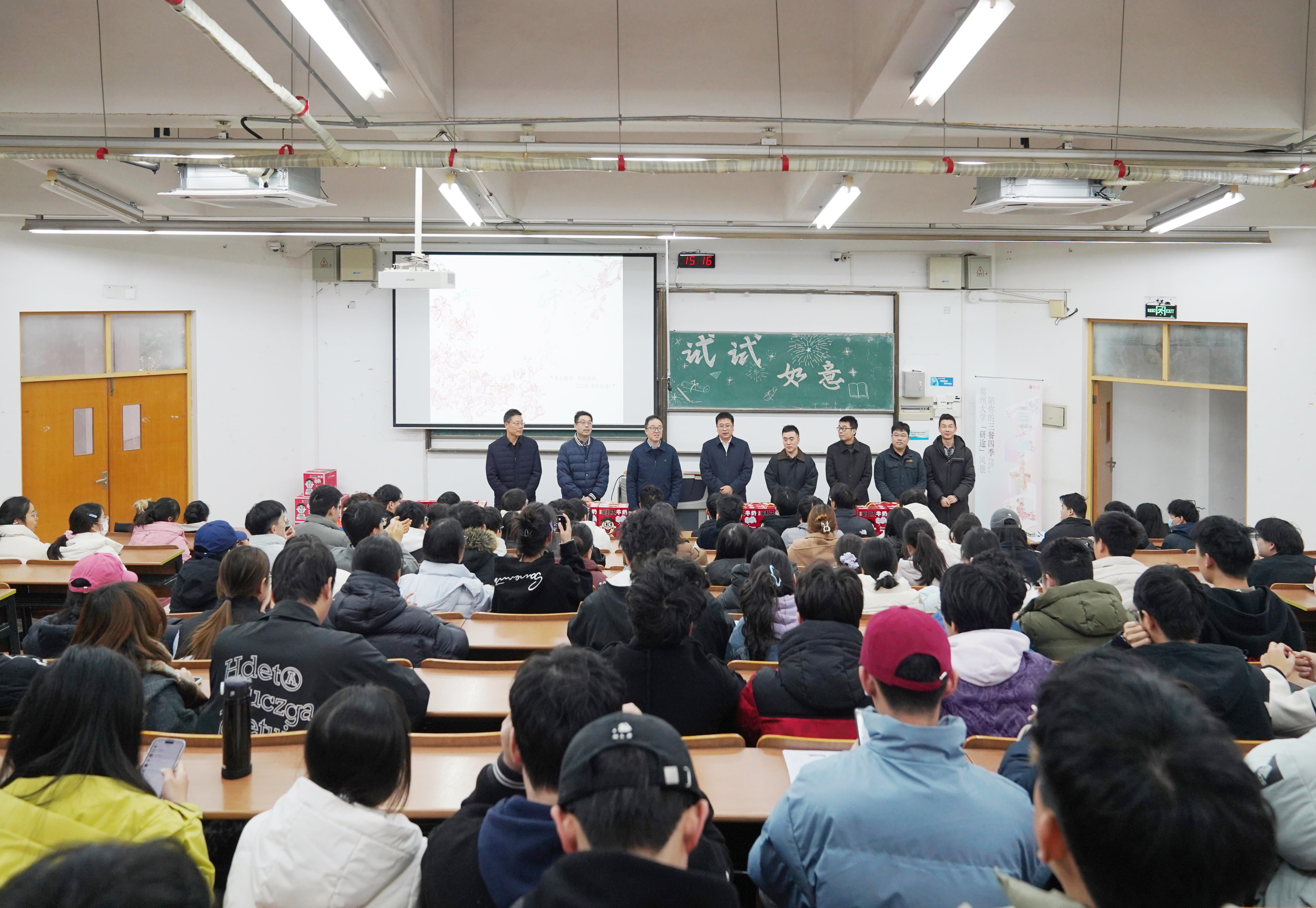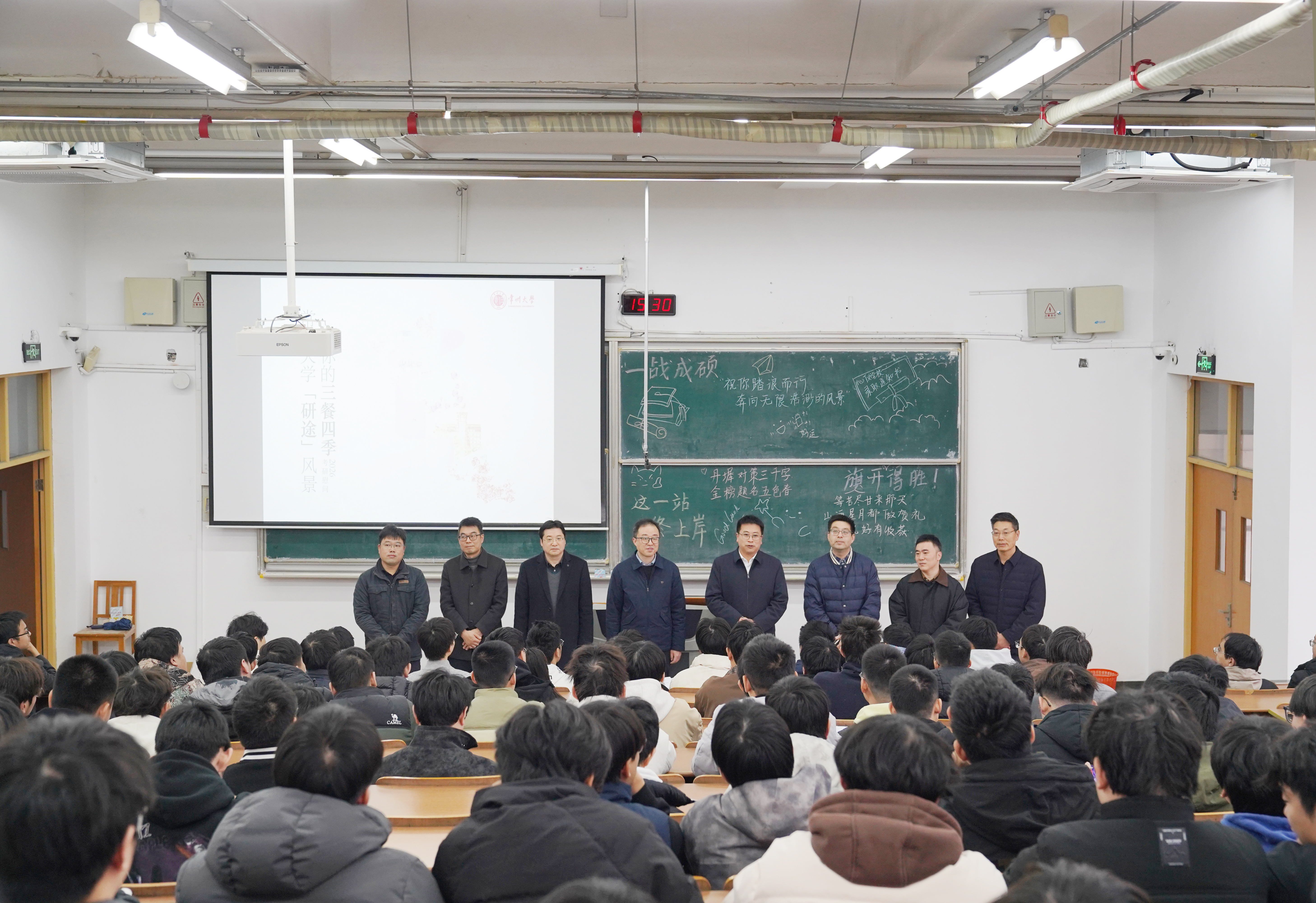 在备战2026年全国硕士研究生招生考试最后冲刺的关键时刻,为切实做好考研学生的服务保障工作,帮助他们缓解压力、坚定信心,12月12日下午,党委常委、副校长周刚,党委常委、副校长李亚飞深入两校区考研教室和“一站式”学生社区走访慰问考研学生。教务处、学生处、后勤管理处、西太湖校区管委会、资产经营公司等相关职能部门及相关学院负责人陪同慰问。