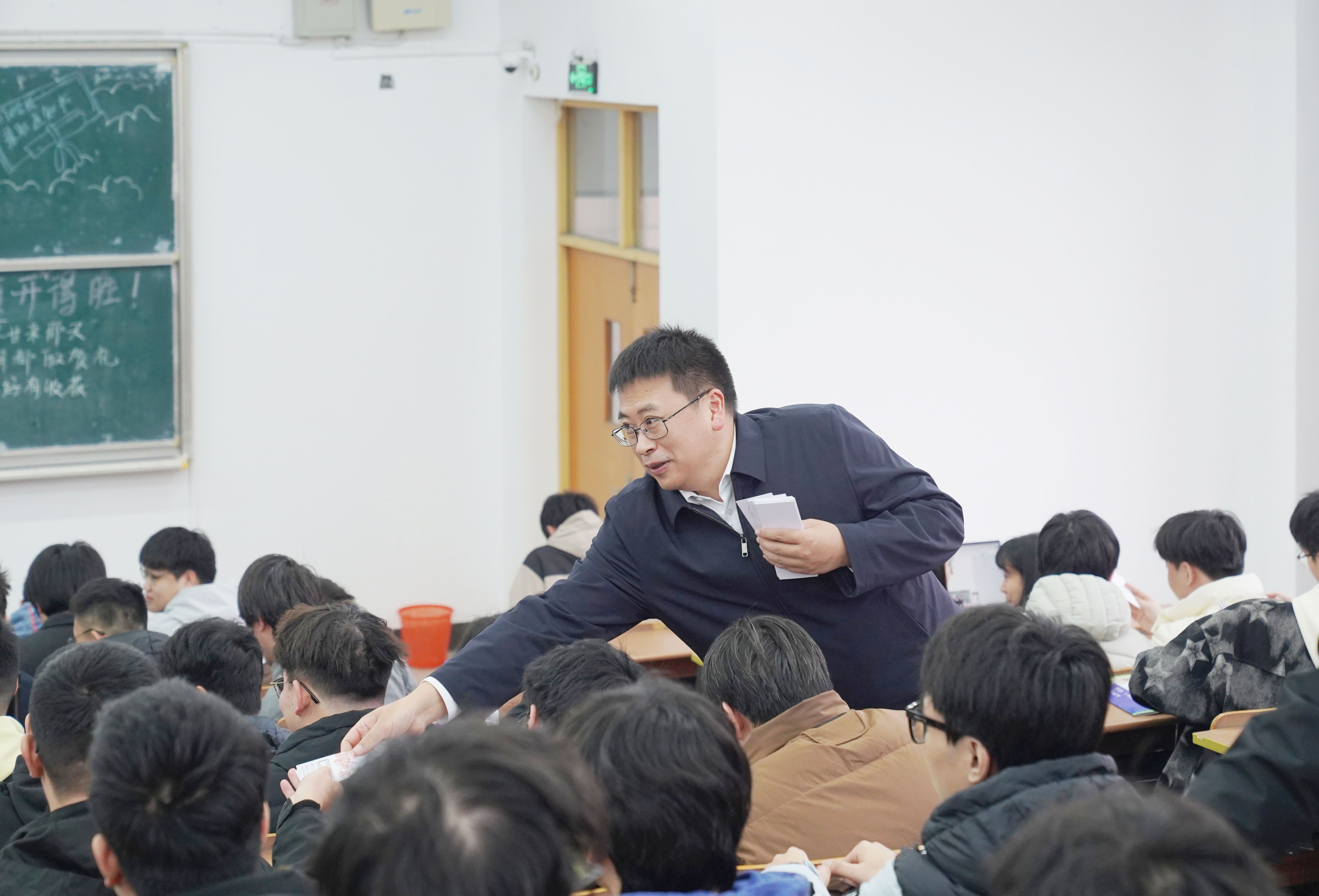 周刚详细询问了同学们的复习进度、心理状态与生活情况,对大家迎难而上、刻苦钻研的精神给予了高度赞扬。他鼓励同学们坚定理想信念,调整好心态,以自信从容的姿态迎接挑战。李亚飞叮嘱全体同学在冲刺备考的关键时期,做到劳逸结合、保重身体,以饱满的状态和昂扬的斗志决胜考场。