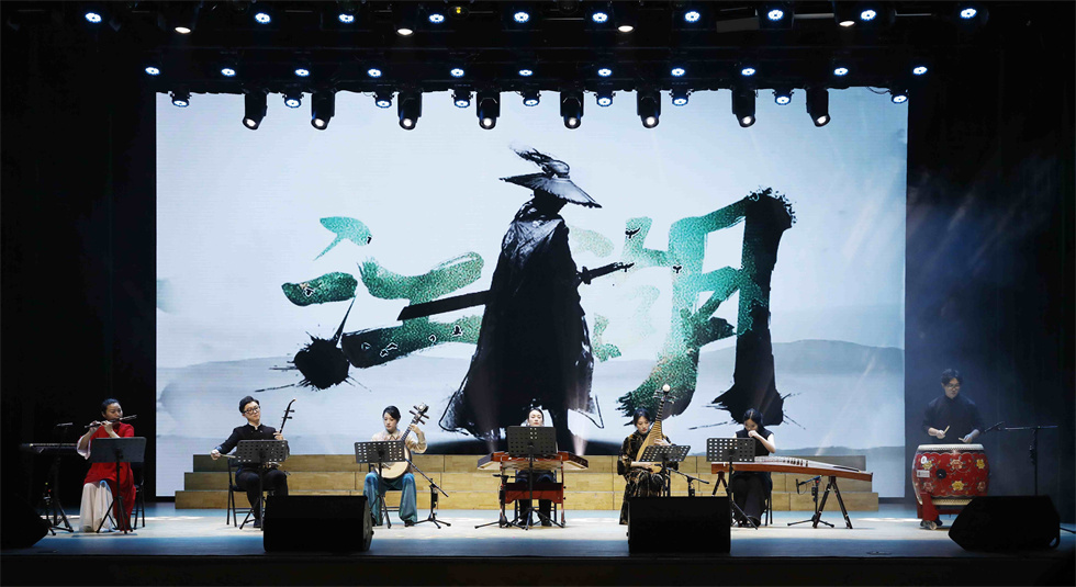 音乐会以“影音留芳,岁序新章”为主题,通过“烽火岁月”“港台留声”“春潮织梦”“国色流芳”和“时代放歌”等篇章的精彩演绎,带领观众穿越时空,重温经典影视作品中的动人旋律,展现了中国文艺创作在不同历史阶段的精神风貌。音乐会伊始,由民乐系教师带来的重奏《名著主题变奏》气势磅礴又欢快激昂,四大名著与民乐雅韵的浪漫邂逅,瞬间点燃全场观众的热情,《三国演义》的豪情、《水浒传》的侠义、《西游记》的奇幻与《红楼梦》的婉转一一呈现,在传统乐器的演绎下焕发新的艺术生命力。烽火岁月激荡英雄情怀,《弹起我心爱的土琵琶》《长城谣》《游击队之歌》《地道战》《英雄赞歌》等电影插曲联唱,铿锵有力的节奏和激昂豪迈的歌声饱含对英雄的深情礼赞,再现了革命战争年代的英勇与坚韧。港台留声流淌时代记忆,《刀剑如梦》《上海滩》《渡情》《铁血丹心》《万里长城永不倒》《在水一方》等经典旋律接连奏响,或江湖豪情,或柔情缱绻,或家国大义,在音符的流转中写就时代深处的欢愉与叹息。春潮织梦咏唱生活变迁,《新·教我如何不想她》《渴望》《篱笆墙的影子》《牡丹之歌》《少年壮志不言愁》《千万次的问》等歌曲轮番上演,以真挚浓郁的情感咏叹人间烟火,吟唱时代变迁下的心灵悸动,唤醒几代人共有的情感记忆,在悠扬音符间铺展开一幅幅生动的社会图景。群舞《掀起你的盖头来》欢快热烈,舞步轻盈,将现场气氛推向高潮,浓郁的民族风情扑面而来。国色流芳彰显文化自信,《女儿情》《枉凝眉》《滚滚长江东逝水》《少林少林》《向天再借五百年》《等待》《得民心者得天下》等经典曲目婉转悠扬、气势恢宏,将传统文化的深邃意境与艺术魅力展现得淋漓尽致,令人心驰神往。时代放歌凝聚中国精神,《如愿》《萱草花》《这世界有那么多人》《人世间》《天堂》《被遗忘的时光》《相思》《假如爱有天意》《东方为什么这么红》以深沉悠扬的旋律收束,将家国情怀与时代颂歌推向顶峰,音符跨越岁月,见证着不变的初心与前行的力量。音乐会在合唱《爱永在》《中国军魂》中落下帷幕。激昂的旋律响彻大厅,掌声经久不息。