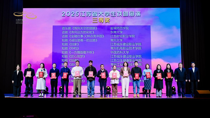 据悉,本年度获得特等奖、一等奖及部分二等奖的作品将纳入2026年度江苏省“高雅艺术进校园”节目库。明年春天,还将举办大学生戏剧展演活动优秀剧目展演周,开展专场展演、主题沙龙、高校戏剧社团巡礼等活动。(通讯员/张欢欢 审核/唐琳 编辑/庄媛)