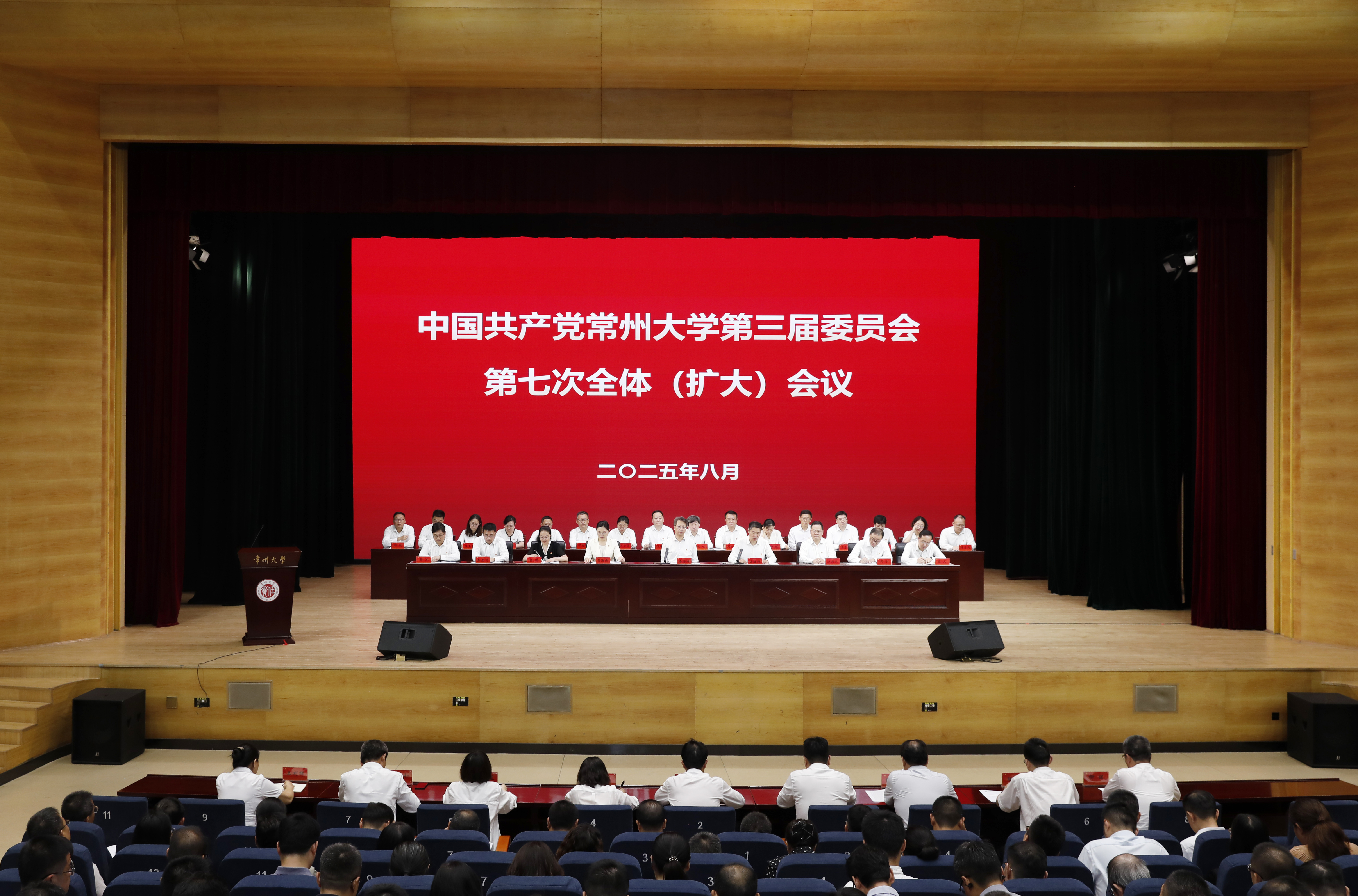 8月30日上午,中国共产党常州大学第三届委员会第七次全体(扩大)会议在西太湖校区举行。全会主要任务是坚持以习近平新时代中国特色社会主义思想为指导,深入贯彻党的二十大和二十届二中、三中全会和全国教育大会精神,全面贯彻习近平总书记关于党的建设的重要思想和对江苏工作重要讲话精神,深入落实省委、市委部署,总结上半年工作,安排下半年工作,进一步深化改革,推动党的建设和全校各项工作实现高质量发展,为全面建成特色鲜明的高水平地方领军型大学奠定坚实基础,为全省、全市发展大局多挑担子、多作贡献。