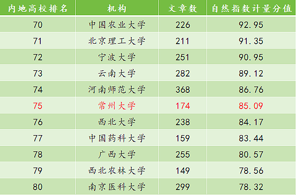 我校在Nature Index全国内地高校中排名第75位