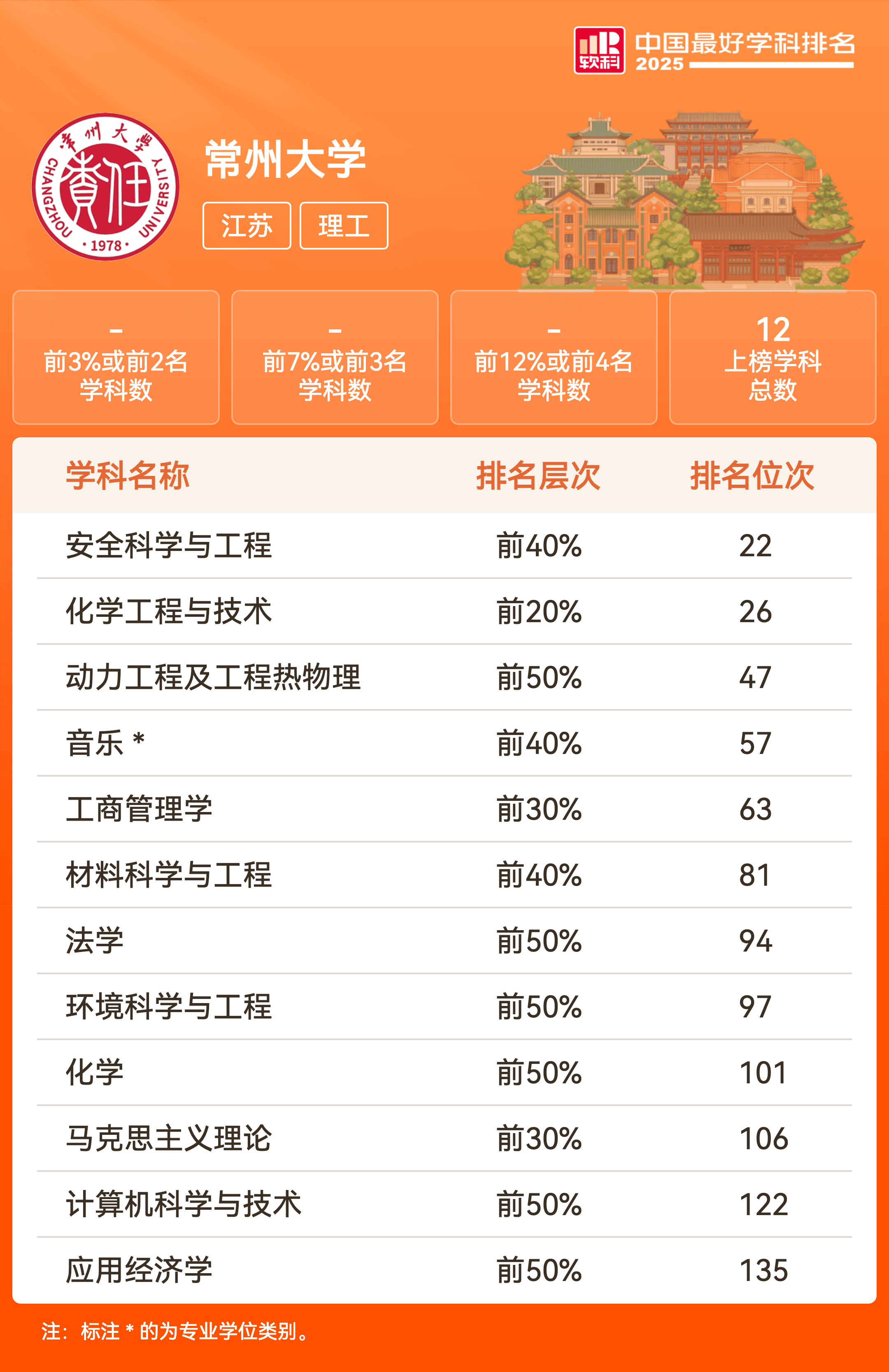 我校12个学科上榜软科中国最好学科排名