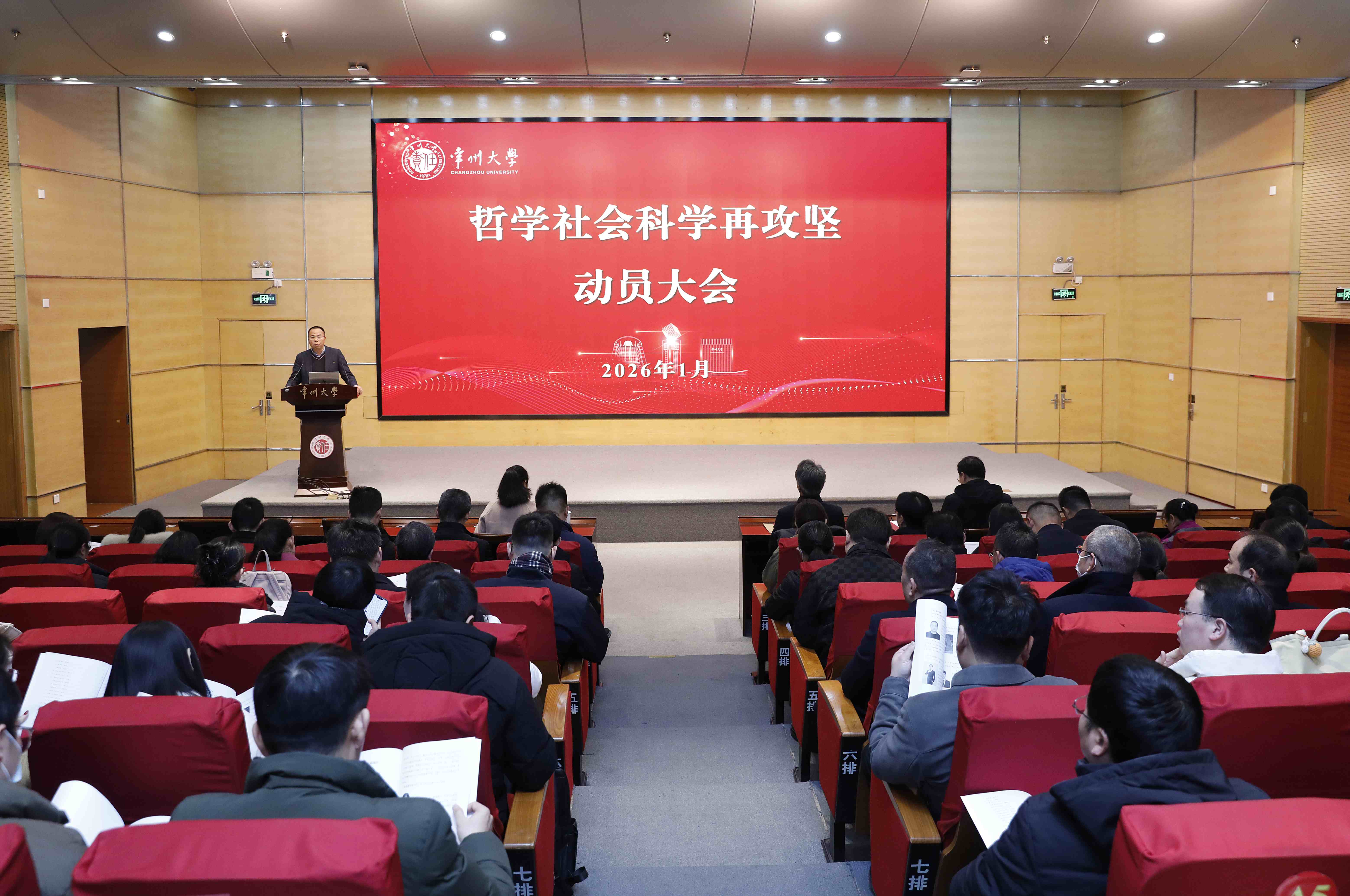 近日,学校在文彰楼报告厅召开哲学社会科学再攻坚动员大会,全面总结2025年学校哲学社会科学工作,系统部署2026年重点任务。校党委书记徐守坤,党委常委、副校长杨琳,党委常委、组织部部长秦义出席会议。相关职能部门、学院、实体科研机构负责人和教师代表200余人参加会议。人文社科处负责人主持会议。