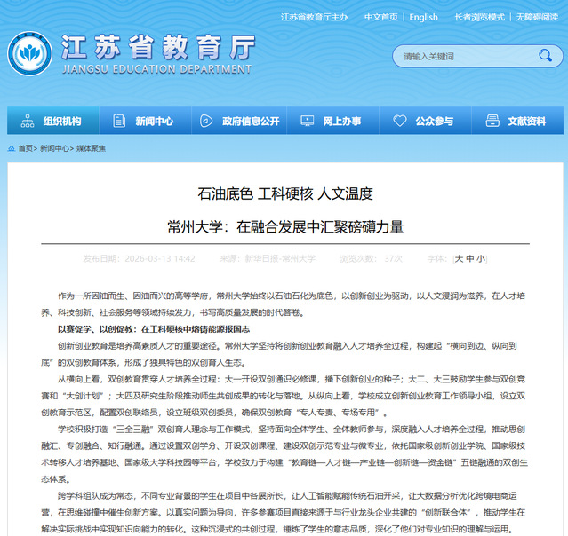 江苏教育厅官网(媒体聚焦):http://jyt.jiangsu.gov.cn/art/2026/3/13/art_57810_11741906.html