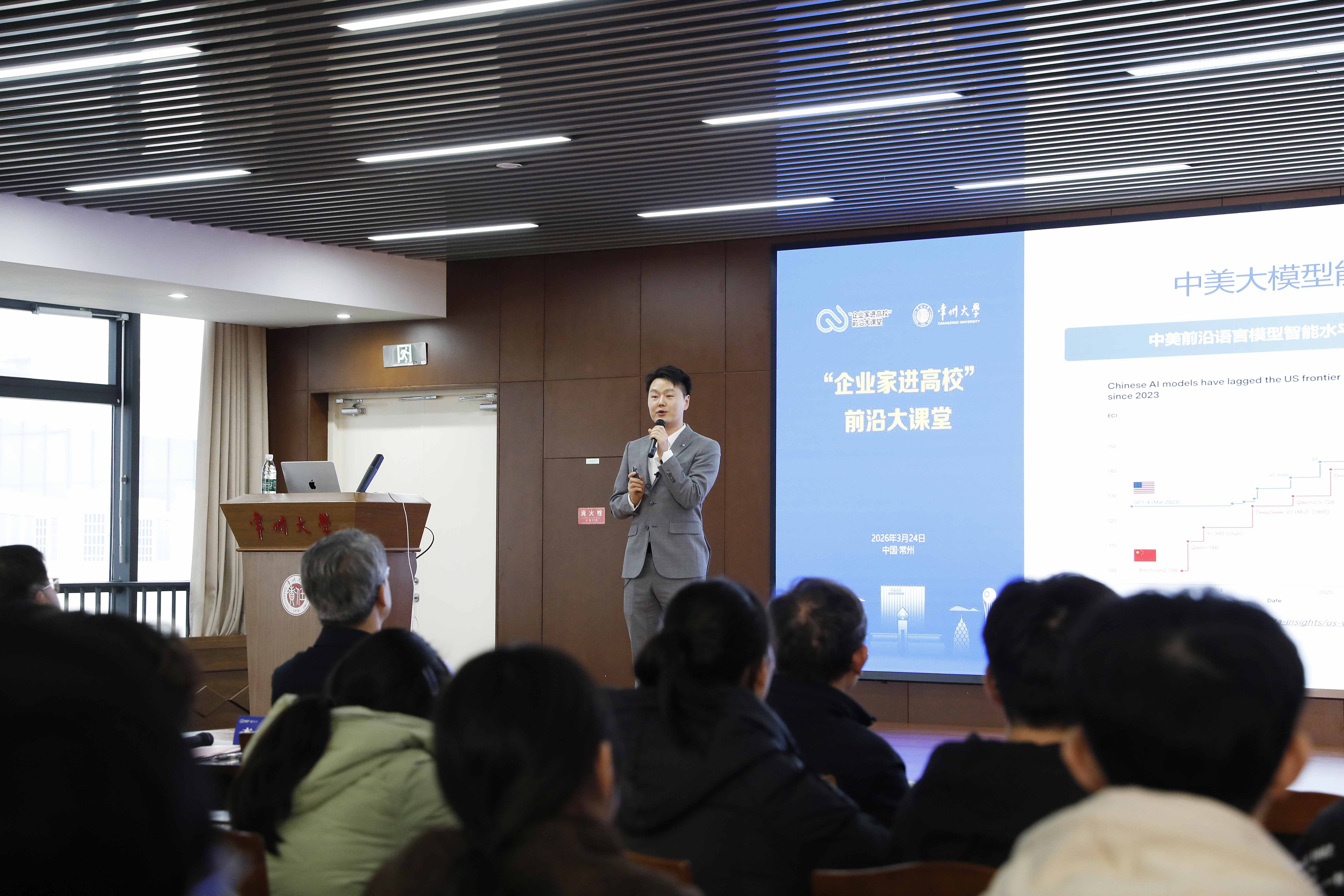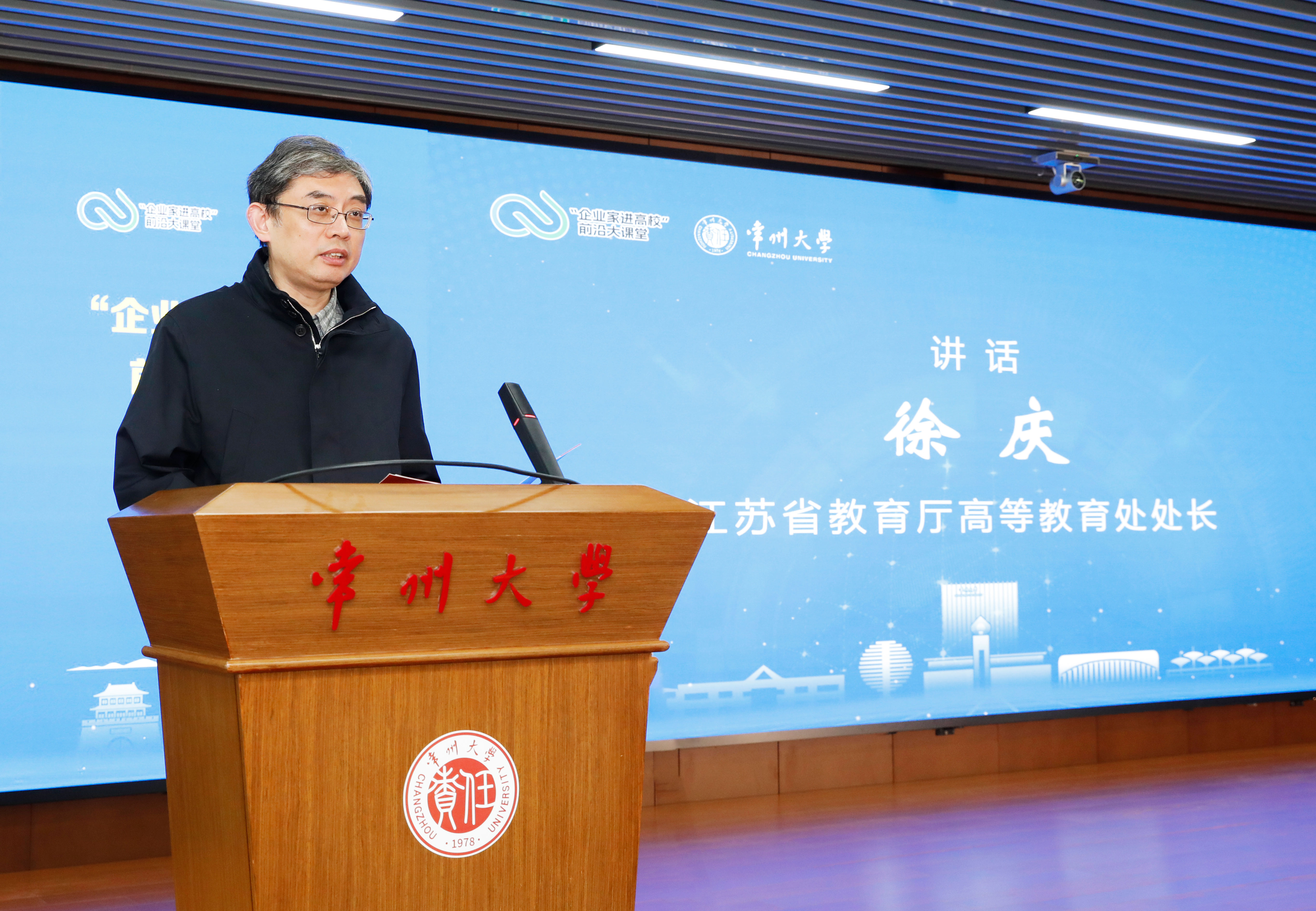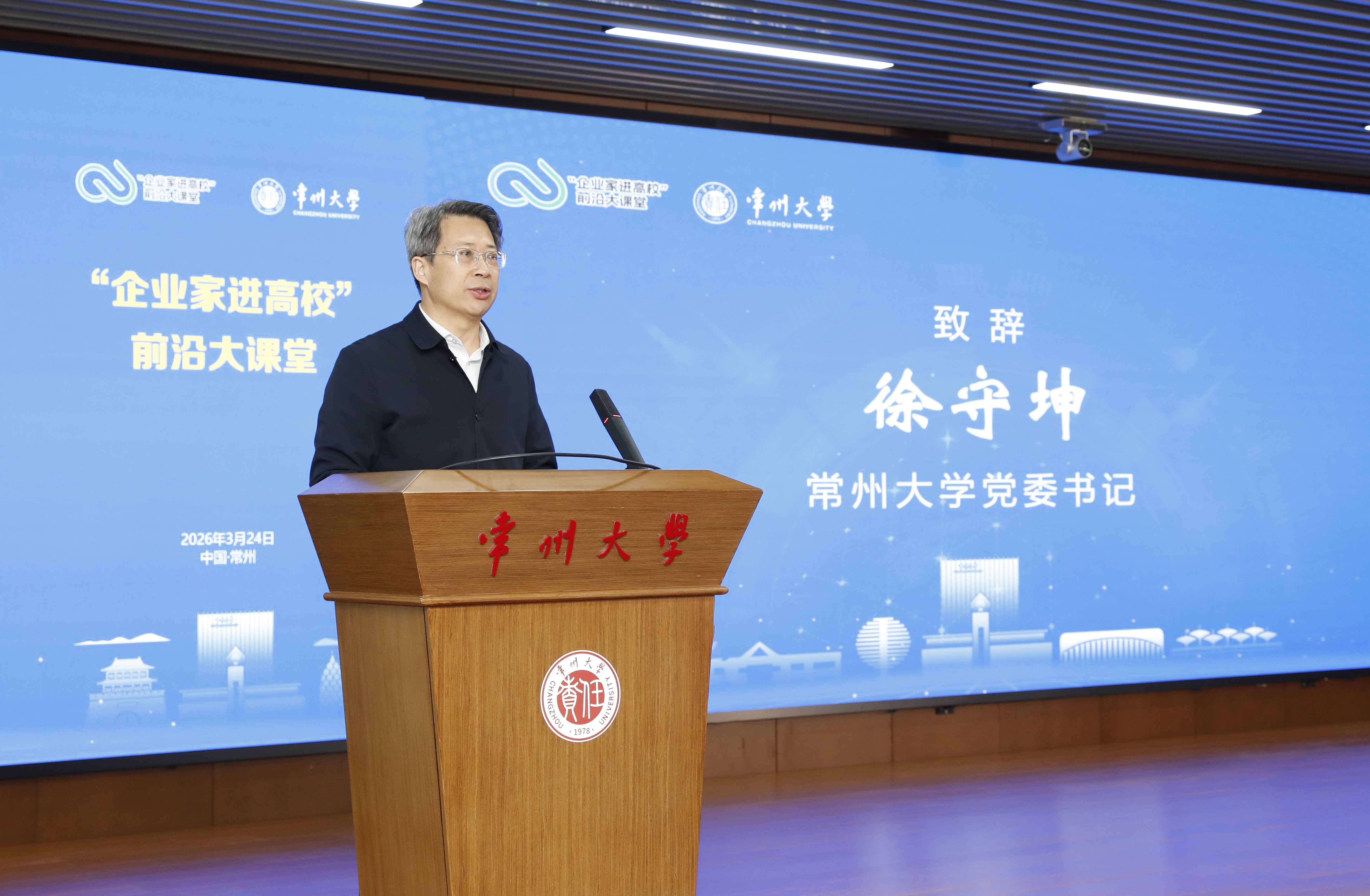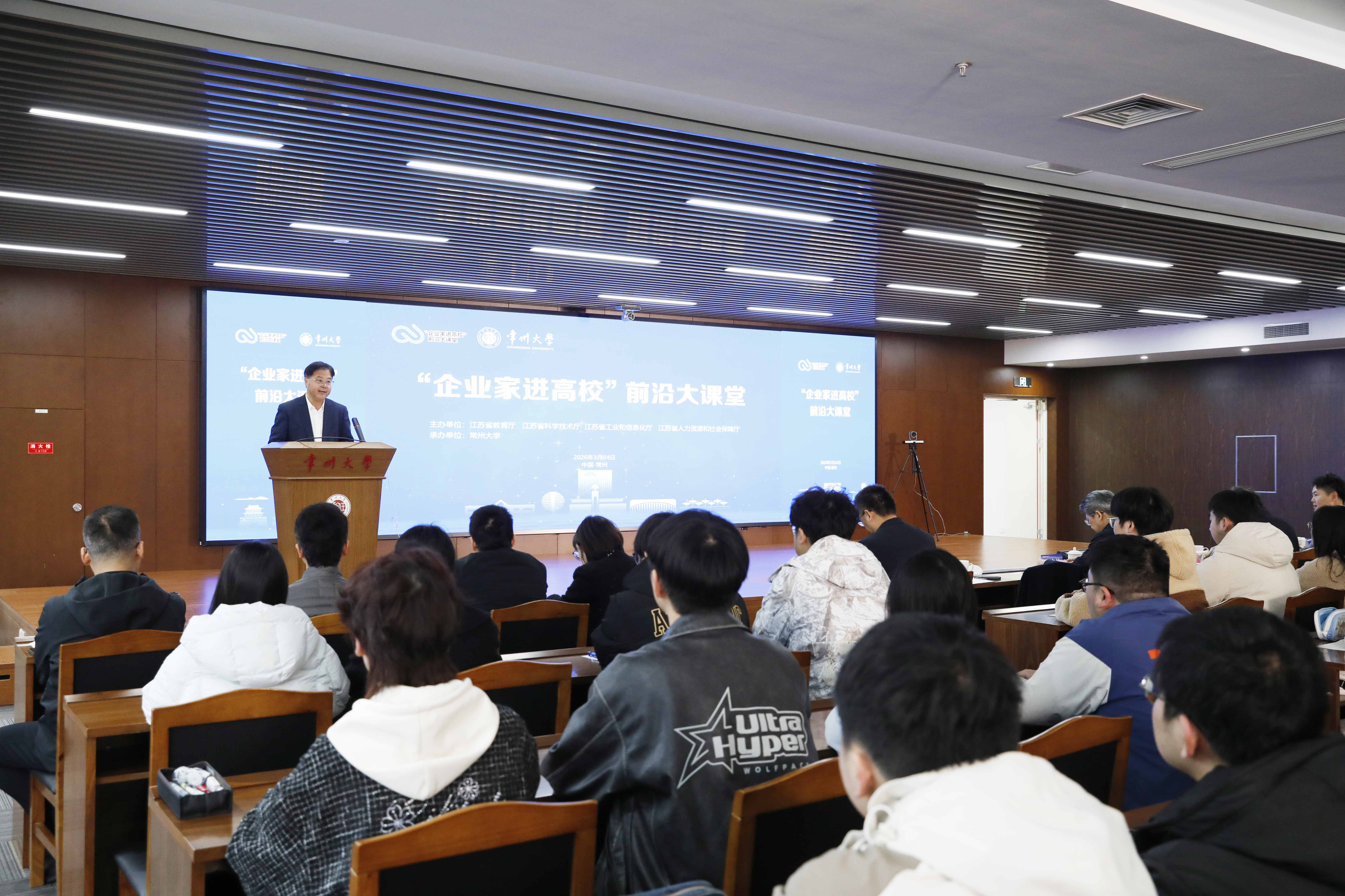 徐守坤表示,“企业家进高校”前沿大课堂活动是江苏省立足江苏产业实际和高校人才培养需求,深化产教协同育人,助力江苏高质量发展的创新举措。作为江苏高水平大学建设高校,常州大学扎根江苏48年,始终把服务地方发展作为办学的落脚点,主动融入国家创新驱动发展战略。他期待与全省高校携手同行,建立更加常态化、机制化的校企交流通道,紧密对接产业前沿趋势,培育更贴近产业、更扎根实践、更具竞争力的产业高素质人才,共同推动教育链、人才链与产业链、创新链的深度融合。