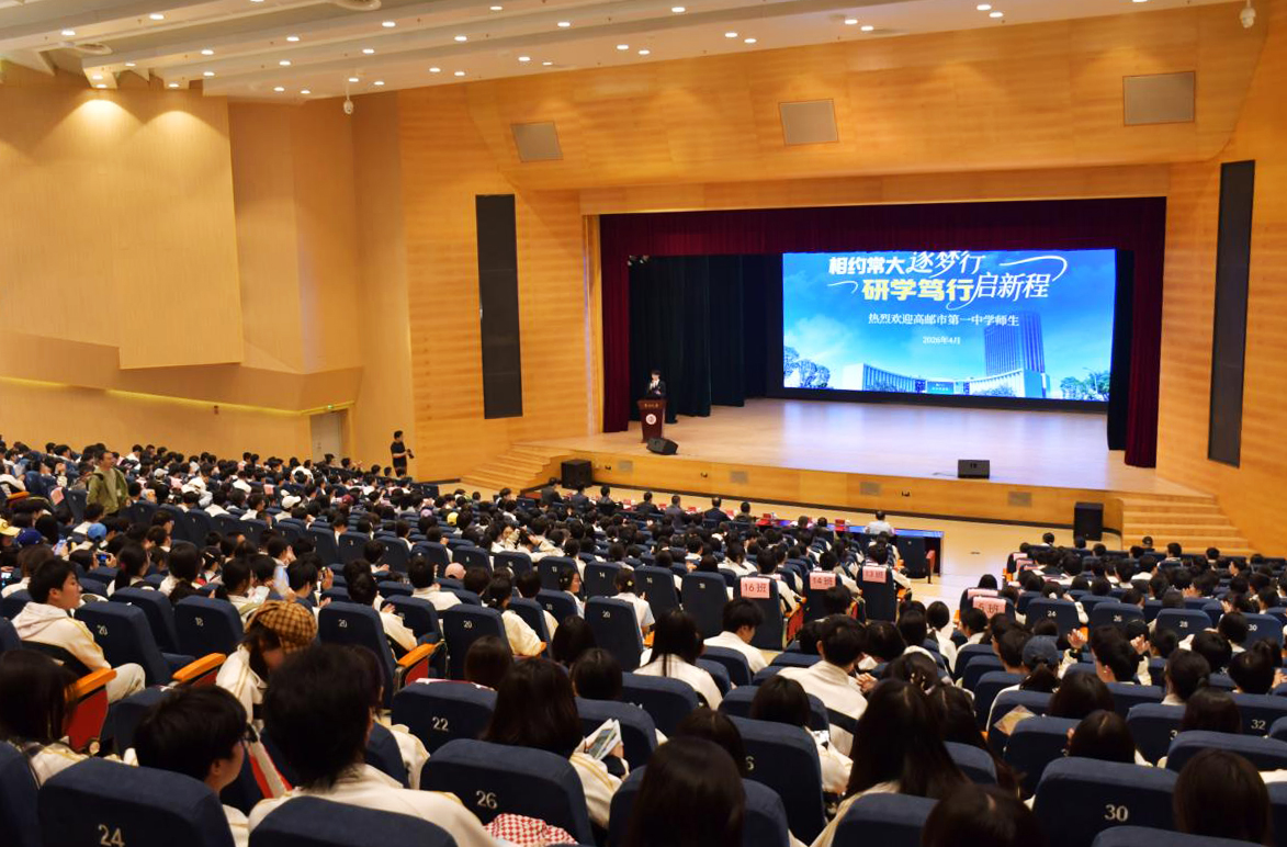 4月27日上午,江苏省高邮市第一中学高二年级746名学子和37位老师来校开展研学活动。高邮市第一中学党委书记吕所勇、副校长王祥,常州大学党委常委、副校长周刚出席活动,我校石工学院、西太湖校区管委会、学生处相关负责人参加活动。