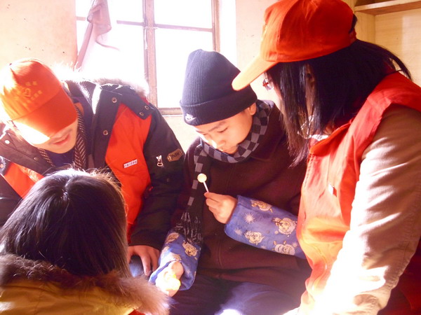 在社区工作人员的陪同下,大学生一行来到低保户张国俊小朋友家中。张国俊父亲失业在家,母亲早逝,空荡荡的家中没有一件像样的家电,父子俩衣着单薄,脸和手都冻得通红。大学生们拉起患有自闭症的张国俊小朋友的手嘘寒问暖,并给他穿戴起了新棉鞋、手套和帽子等御寒衣物。而这些都是大学生们自己用省下的零花钱购买的。随后,大学生来走访了其他几户新市民学校的学生,同样给他们带去了御寒用品和书籍。(周明胜 王彩芳)