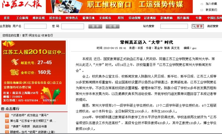 江苏工人报报道我校更名新闻发布会