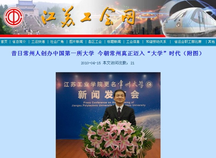 本网讯 当年,常州人盛宣怀创办中国第一所正规大学北洋大学堂。近日,国家教育部正式致函江苏省人民政府,同意江苏工业学院更名为常州大学,常州从此迈入“大学”时代。4月14日上午,该校隆重召开“江苏工业学院更名常州大学新闻发布会”。