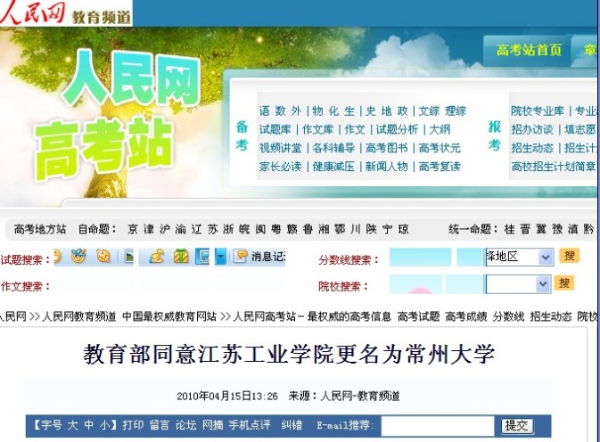 人民网>>人民网教育频道 中国最权威教育网站>>人民网高考站-最权威的高考信息 高考试题 高考成绩 分数线 招生动态 院校信息 志愿填报 备考辅导 高考图书 高考状元