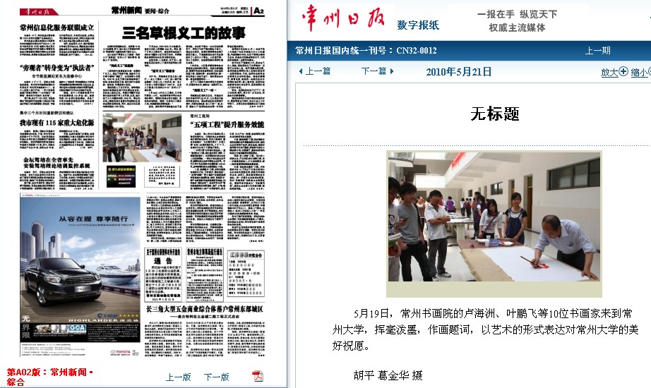胡平 葛金华 常州日报 A2版 2010.5.21发布时间:2010-05-24浏览次数:80