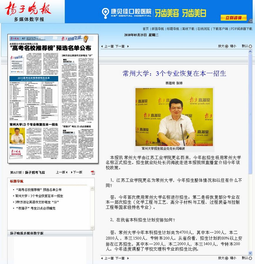 本报讯 常州大学由江苏工业学院更名而来,今年起招生将用常州大学名称正式招生。招生就业处处长闫海波走进本报视频直播室介绍今年该校政策。