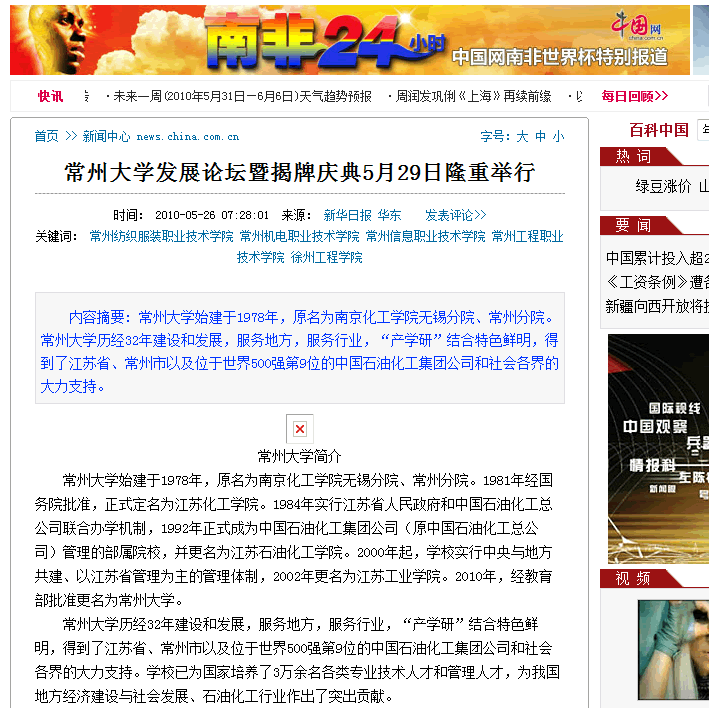 新华日报报道:常州大学发展论坛暨揭牌庆典5月29日隆重举行