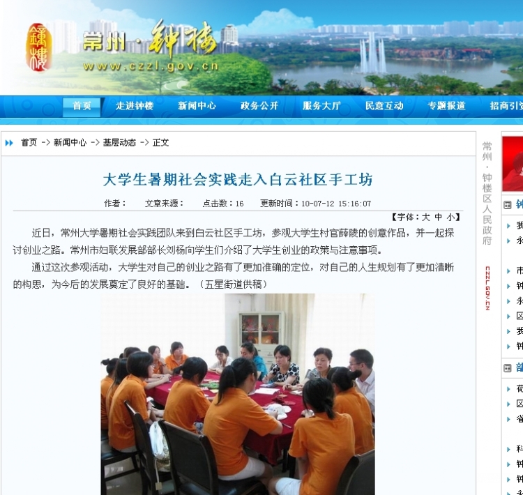 钟楼区政府网站:大学生暑期社会实践走入白云社区手工坊