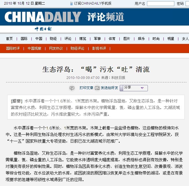 中国低碳经济网: http://www.lowcn.com/wushui/201010/0914748.html