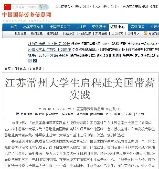 常州大学国际教育交流学院作为国际化工人才的国家级示范基地,有着优质的国际化教育教学资源。落户该学院的暑期赴美带薪实践项目作为常州地区唯一官方授权基地,必将使该项目在星瞻教育集团(Student Quest)和常州大学的共同努力下,将该项目在常州地区得好很好的推动和促进。该项目落户常州也必将为促进常州大学国际化人才培养模式的创新,更为常州地区教育人才的国际化作出贡献。 (常州大学 葛金华 林栋)