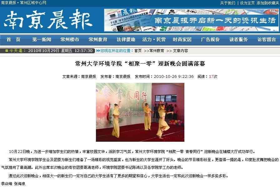 《南京晨报》常州大学环境学院“相聚一零”迎新晚会圆满落幕
