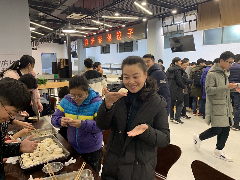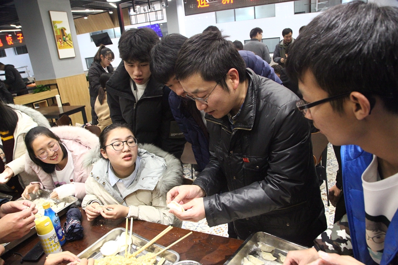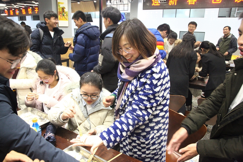 晚会结束后,全体嘉宾和同学一同来到二食堂包饺子,在欢声笑语中共迎新年。(通讯员/席帅 编辑/庄媛)