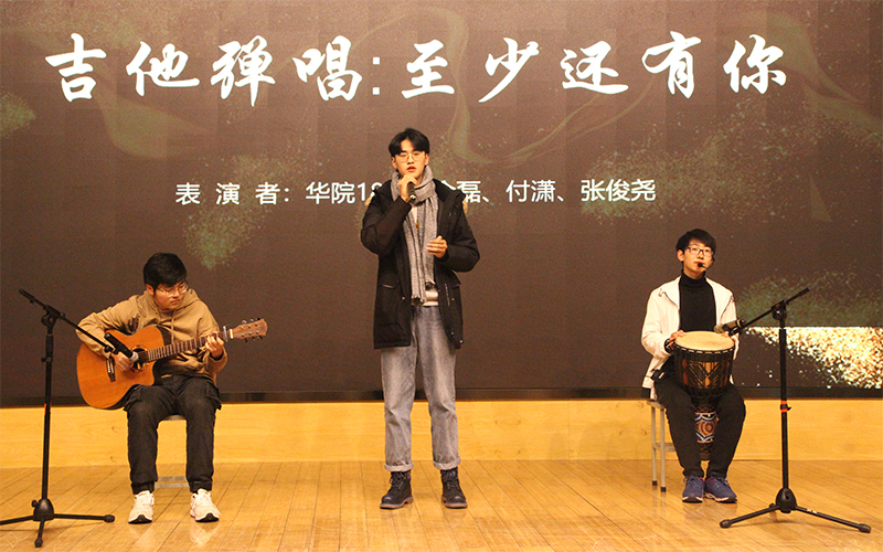 晚会现场,华院、智院学子用rap、吉他弹唱、相声、歌剧等形式展示了他们的艺术素养和青春朝气。其中,华院193班的舞台剧《白雪公主》用轻松幽默的表演活跃了晚会气氛,并向观众传达了“初心”不可失的理念;华院192班的相声《创新》笑料不断,也让同学们对“何为创新”产生新的思考;华智191班带来合唱《儿时》,用歌声追忆儿时,展望未来;华院183班带来四重唱《生长》,通过改编将传统美声和流行唱法结合,将“生长的渴望”展现得淋漓尽致;华院173班的王皓天向全体师生献上原创歌曲《韶华》。