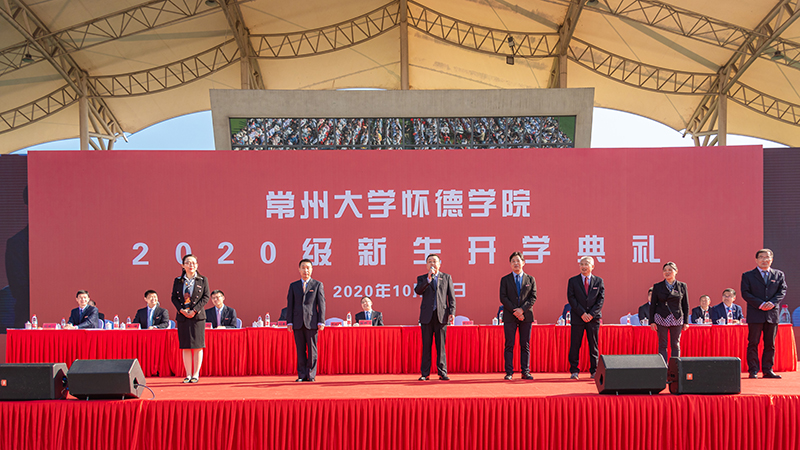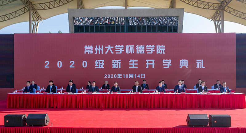 10月14日上午,常州大学怀德学院2020级新生开学典礼在体育场隆重举行。常州大学党委常委、副校长陆锦冲出席开学典礼,相关职能部门和学院负责人、新生辅导员、2020级全体新生参加开学典礼。怀德学院党委书记李伟明主持开学典礼。