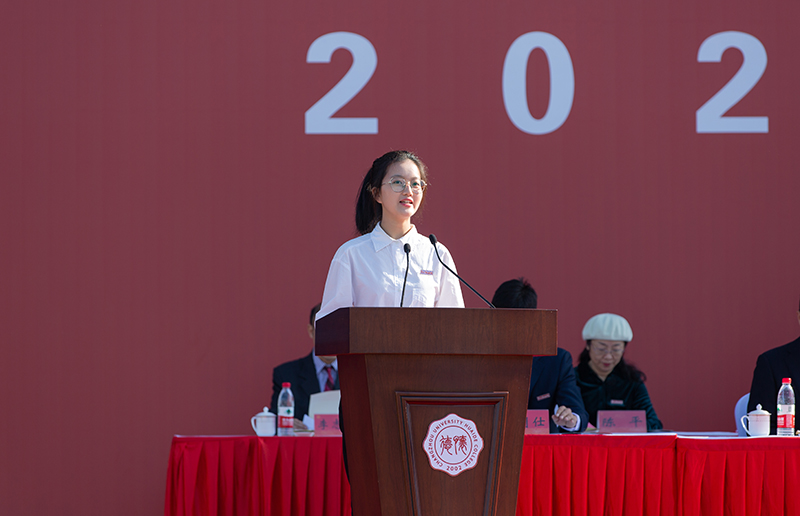 典礼在庄严的升旗仪式中拉开帷幕。新生代表工程管理201班陈柯妤同学发言,她希望和同学们一起尽快适应大学生活,把理想和抱负熔铸在脚踏实地的奋斗中,用中国梦激扬青春梦;老生代表国贸181班易兴同学结合自身经历发言,他呼吁学弟学妹们合理规划大学生活,学会探索和创新,在大学四年的生活中成就更好的自己;教师代表陈平教授发言,她勉励新生勇于担负时代使命,在担当中历练,在尽责中成长,让青春在新时代的广阔天地中璀璨绽放;各系部负责人深情寄语新生,希望新生们珍惜大学光阴,成就崭新的自我。