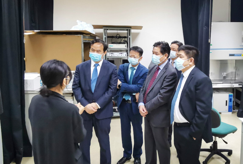 在澳门科技大学,校董会秘书长、副校长唐嘉乐,副校长庞川,校长办公室秘书处处长朱爱微,研究生院行政主任冯钧国会见了代表团。双方回顾了2017年两校签约以来的交流与合作情况,并就通过整合两校资源,成立苏澳研究院、联合申请硕士合作办学项目、申报苏澳园产业政策研究项目、联合培养高端人才以及高层次人才引进等进行了深入交流。代表团一行还参观了澳科大中药国家重点实验室。