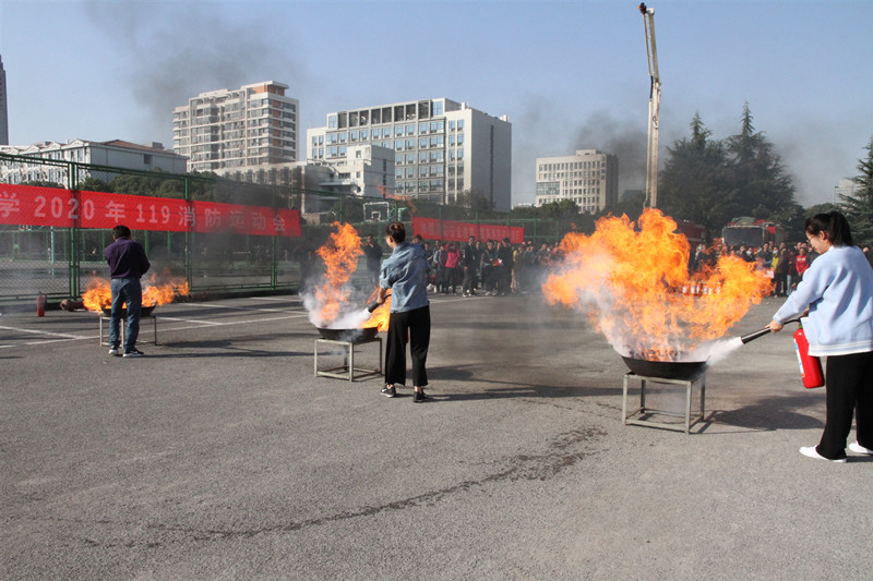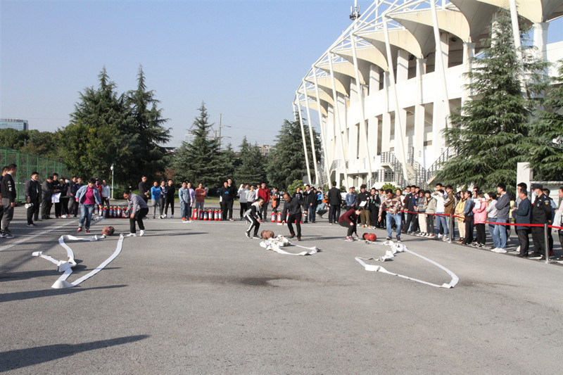 消防运动会设“油盆灭火器灭火”“油桶灭火毯灭火”“抛接水带”等团体及个人项目。参赛队员斗志昂扬,争分夺秒,团结协作完成了各比赛项目,赢得了现场观众的阵阵喝彩。经过激烈角逐,怀德学院分工会、后勤管理分工会、经济学院分工会、外国语学院分工会、计算机与人工智能学院 阿里云大数据学院分工会、商学院分工会分获团体前六名。